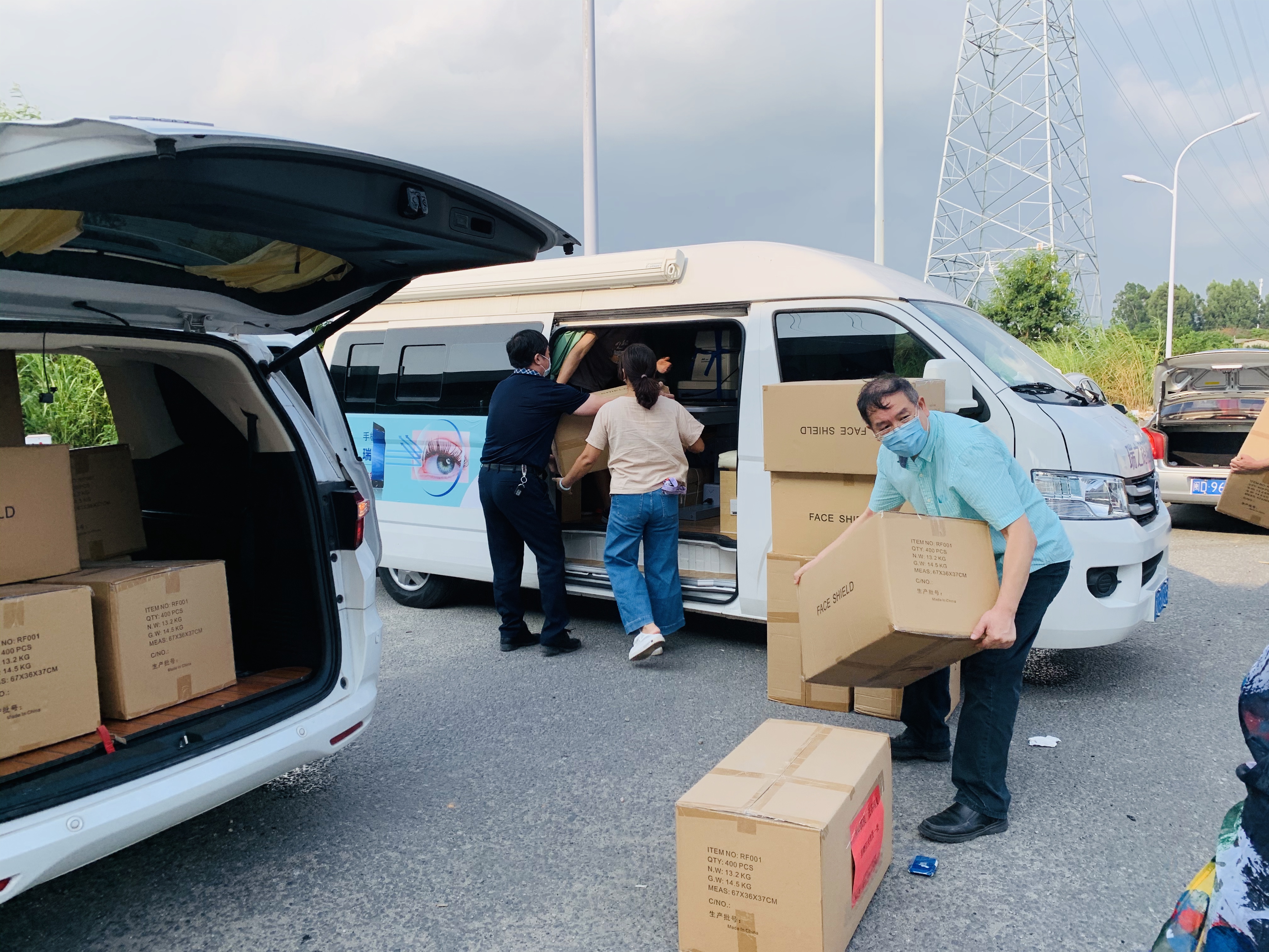 這些盟員不分男女,擼起袖子,把數(shù)十箱子幾十斤重的箱子,從驗(yàn)光車上一一卸下來(lái),再分裝入到多輛小轎車?yán)?,直接駛向紅十字會(huì)倉(cāng)庫(kù),以最快的速度分發(fā)到抗疫第一線工作人員手中。