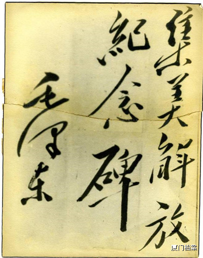 毛澤東同志為集美解放紀(jì)念碑題詞