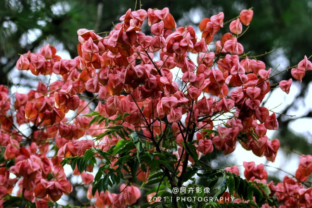 欒樹樹梢上的那一一簇簇亮黃和鮮紅
