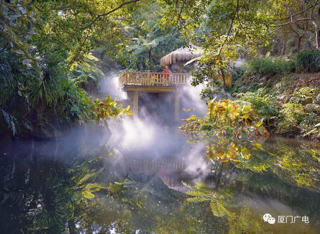 如今雨林世界從樵溪橋到高讀琴洞,都可以欣賞到煙霧繚繞的熱帶美景。氤氳霧氣搭配小橋流水、綠草幽石,讓人好似進(jìn)入了神秘的仙谷幽境里。