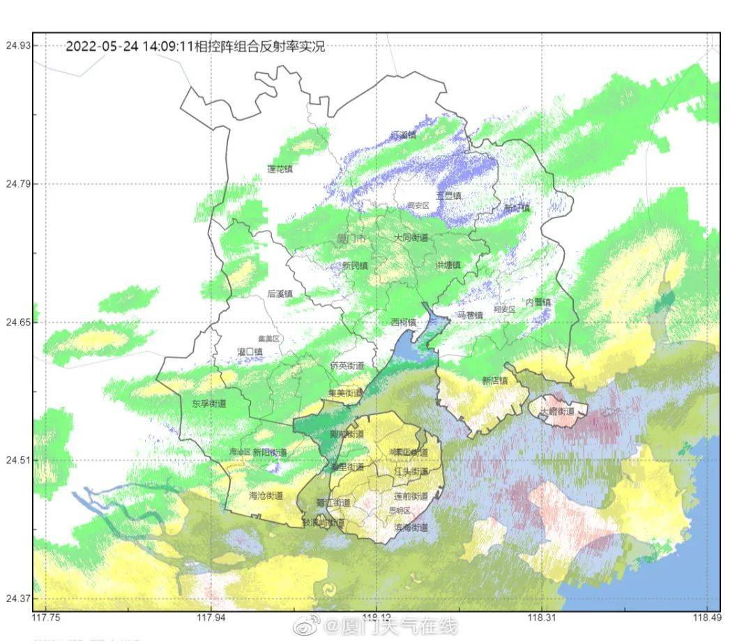 廈門市氣象臺(tái)5月24日14時(shí)20分變更發(fā)布暴雨橙色預(yù)警:過去1小時(shí)思明區(qū)部分鎮(zhèn)街已出現(xiàn) 40毫米以上強(qiáng)降水。 預(yù)計(jì)未來3小時(shí)思明區(qū)、湖里區(qū)部分鎮(zhèn)街強(qiáng)降雨仍將持續(xù)。
