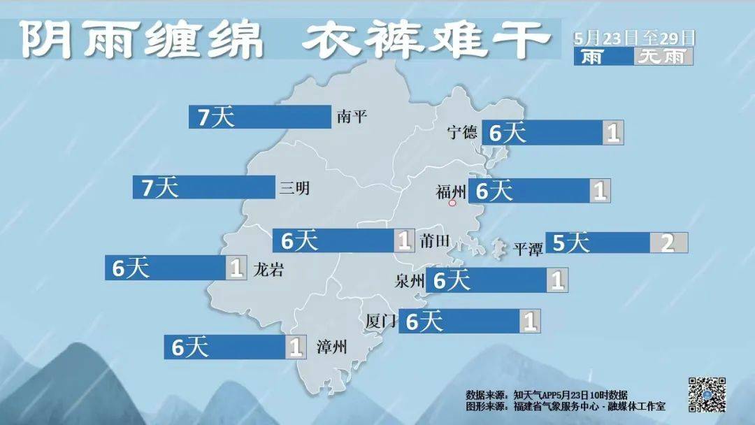 23日,全省陰有陣雨,部分中到大雨,三明、龍巖的局部有暴雨。