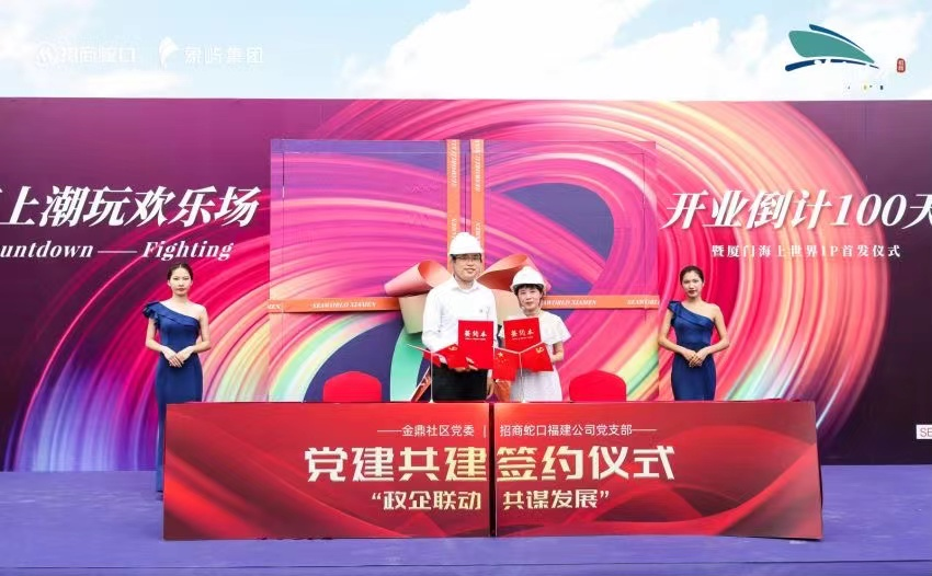 招商蛇口福建公司黨支部作為廈門海上世界開發(fā)建設(shè)的一線團(tuán)隊(duì)?wèi)?zhàn)斗堡壘,在項(xiàng)目商業(yè)即將開業(yè)之際,與屬地金鼎社區(qū)簽訂黨建共建協(xié)議,在黨建引領(lǐng)下優(yōu)勢互補(bǔ)、合作互助,承諾通過合作共建、凝聚合力,共同為廈門西海岸線片區(qū)、港口及航線建設(shè)貢獻(xiàn)力量,迎接黨的二十大勝利召開。