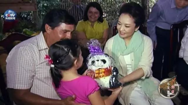 △彭麗媛將熊貓玩具送給瑪麗亞娜