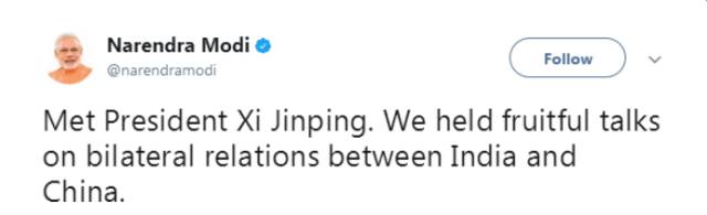 “見了習近平主席。我們就印中雙邊關系舉行了富有成果的會談。”
