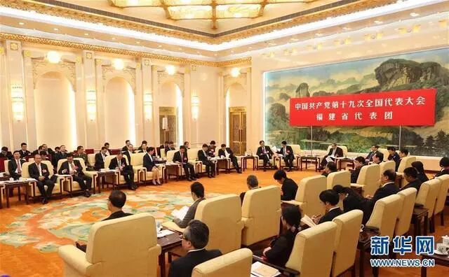 10月19日,十九大福建省代表團(tuán)在討論。 新華社記者金立旺攝