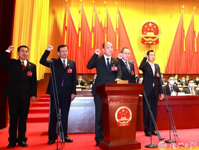 陳秋雄等市領(lǐng)導(dǎo)及主席團其他成員在主席臺就座。