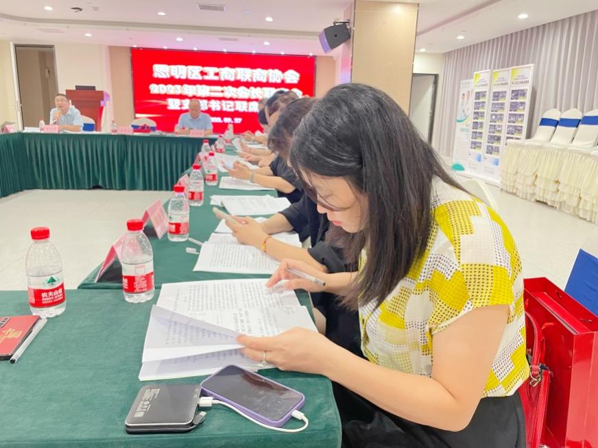 思明區(qū)工商聯(lián)黨組成員、區(qū)工商聯(lián)所屬10個(gè)街道商會(huì)、區(qū)僑促會(huì)、區(qū)青商會(huì)等20多位會(huì)長(zhǎng)、會(huì)長(zhǎng)代表及支部書記參與。思明區(qū)委統(tǒng)戰(zhàn)部副部長(zhǎng)、區(qū)工商聯(lián)(總商會(huì))黨組書記張欽茴主持會(huì)議并部署商協(xié)會(huì)黨建及近期重點(diǎn)工作;思明區(qū)工商聯(lián)(總商會(huì))秘書長(zhǎng)許天津推薦參評(píng)市級(jí)“四好”商會(huì)以及組織2023年“廈門企業(yè)家日”配套活動(dòng)相關(guān)事項(xiàng)。