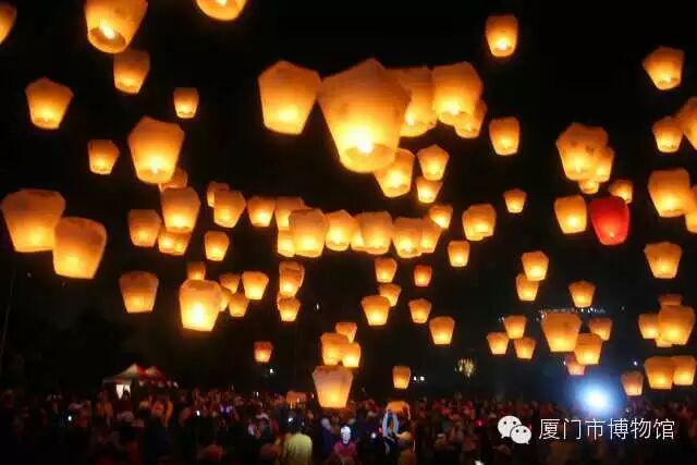 平溪放天燈是閩臺(tái)元宵節(jié)的另一盛會(huì),俗稱(chēng)“北天燈,南蜂炮”。相傳,臺(tái)北平溪鄉(xiāng)十分村一帶,位置偏僻,交通不便,原先為臺(tái)灣原住民的居住地,早期入山開(kāi)拓的漢人常遭殺害或被搶劫,由于通信不便,拓墾的人們以“放天燈”的方式互報(bào)平安,后來(lái)逐漸演變成當(dāng)?shù)卦?jié)的重要習(xí)俗。