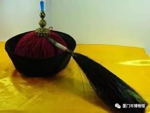 清朝的禮帽在頂珠下有翎管,質(zhì)為白玉或翡翠銅骨瑪瑙等,用以安插翎枝。清翎枝分藍(lán)翎和花翎兩種。