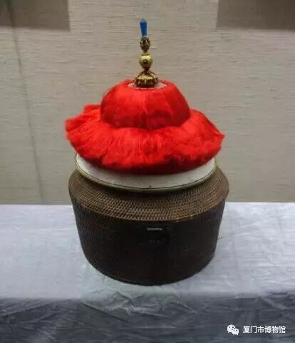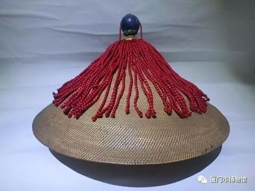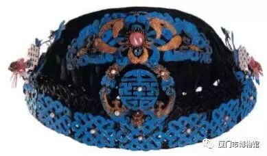 官帽稱大帽,共有兩種:一為冬季所戴,稱“暖帽”,按清禮儀,官帽上的頂珠可以辨別出官品的高低,這件為三品為藍(lán)寶石。到了清朝后期改為比利時進(jìn)口藍(lán)玻璃。