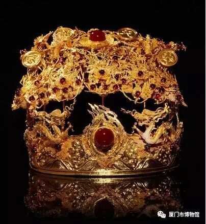 按清代典章規(guī)定清代命婦一至五品的冠統(tǒng)稱“珠冠”。就是在冠上飾以各類寶珠,及各種流蘇、博鬢、鳳鳥、蝴蝶。與霞帔一同穿戴,所以有鳳冠霞帔之說。
