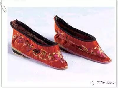 弓鞋繡履又稱“三寸金蓮”小繡鞋。說(shuō)起“三寸金蓮”中國(guó)婦女纏足的歷史差不多有一千余年了。據(jù)說(shuō)南唐李后主非常喜歡能在蓮花上起舞的小腳女子窈娘,一時(shí)間宮內(nèi)宮外竟尚小腳。婦女這種繡鞋主要用綢緞制成,以便于當(dāng)時(shí)標(biāo)準(zhǔn)美足一一“三寸金蓮”相匹配。