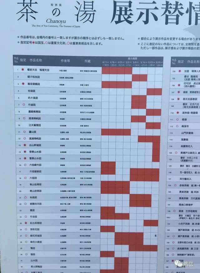 日本東京國立博物館“茶の湯”特展展品輪換提示水牌局部,曜變天目茶碗赫然在NO1的位置。
