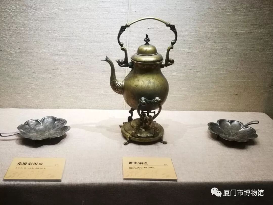說到帶座的水壺,不得不介紹下面這件文物沙瑪瓦爾。單看外表造型,沙瑪瓦爾類似于我們?nèi)粘I畛R姷臒崴?。其?shí),沙瑪瓦爾是新疆維吾爾、哈薩克、柯爾克孜等少數(shù)民族生活中不可缺少的茶炊。沙瑪瓦爾大小規(guī)格不一,它燒水的原理類似漢族用的火鍋:中間有火道,可以放入火炭,四周為儲水部分。外形有方形和圓形,上有爐蓋,下有翻砂底座和龍頭,兩側(cè)有抓耳。沙瑪瓦爾整個制作工藝大部分用手工完成,十分講究結(jié)構(gòu)和工藝,外形美觀,使用方便,深受少數(shù)民族的歡迎。對于愛喝茶的少數(shù)民族來說,是一件得心應(yīng)手的炊具。水燒開后,擺在餐桌上,隨喝隨倒,水始終保持滾燙的溫度,因而保持了茶的香味,在少數(shù)民族的重大節(jié)日婚禮活動中都可以看到沙馬瓦爾的身影。