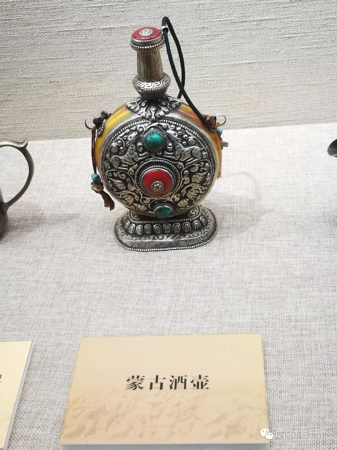 而下面這兩件皮壺和蒙古酒壺,從造型上看都是非常具有游牧民族文化特色的,與他們的馬上生活有關(guān),是游牧人民用來飲酒的器皿。