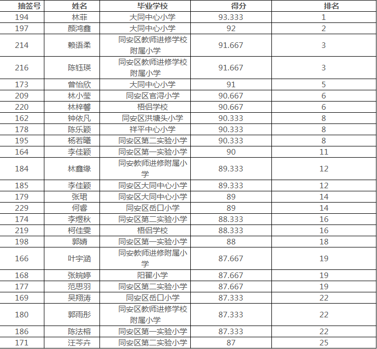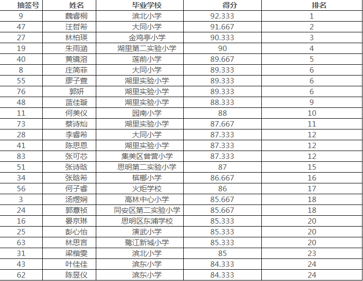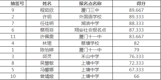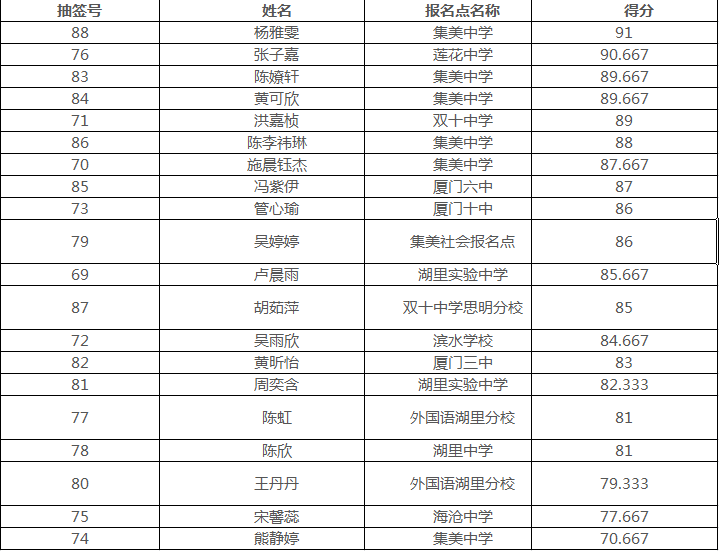 (二)廈門六中初中舞蹈(含啦啦操)錄取名單: