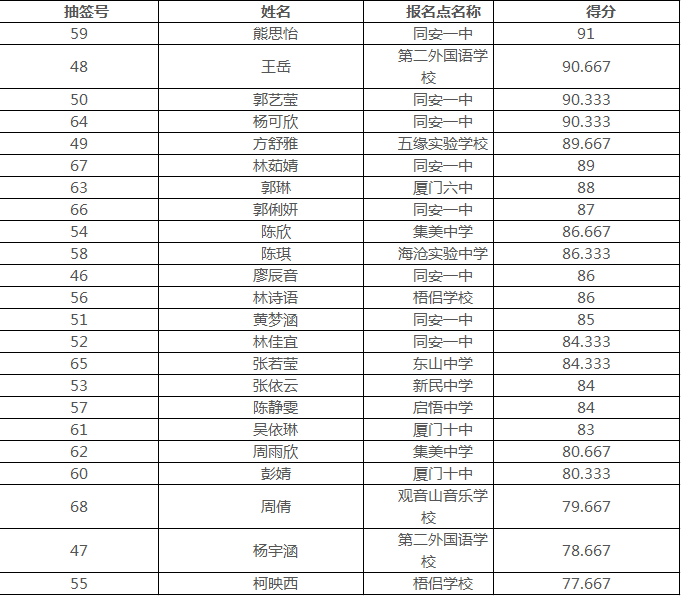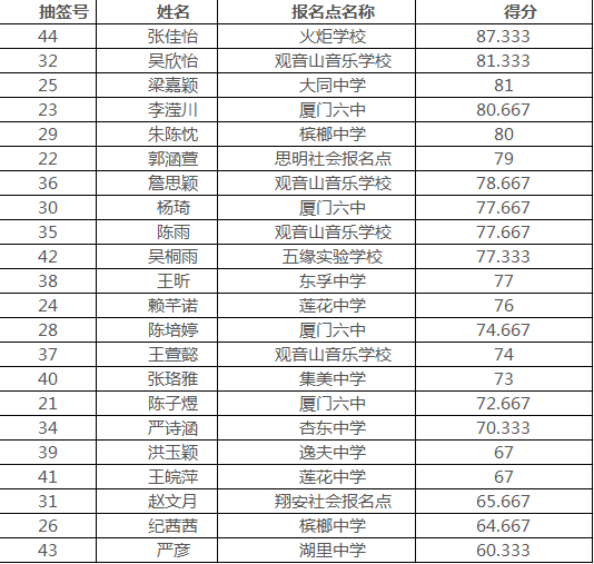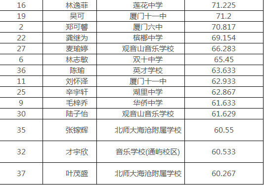 ?。ㄎ澹?a target="_blank">廈門六中高中聲樂入圍名單: