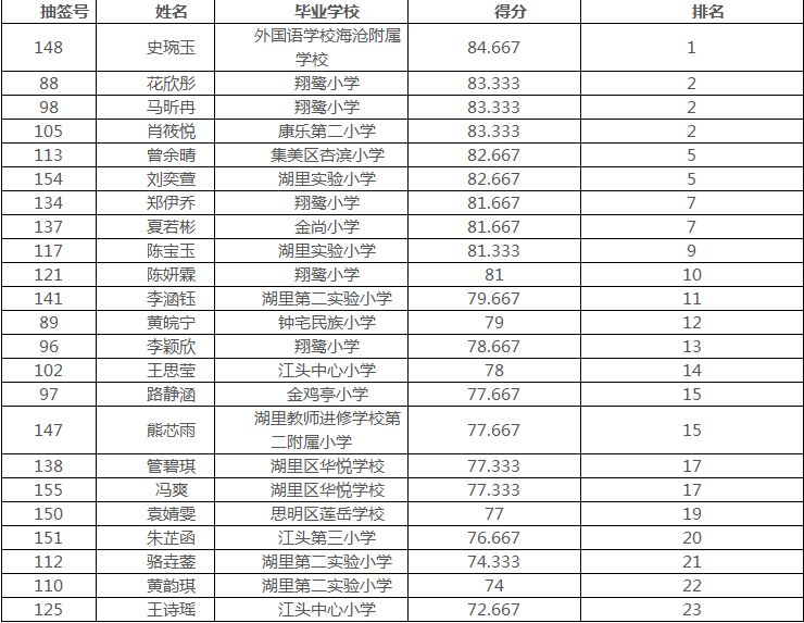 ?。ㄒ唬╇p十中學(xué)初中舞蹈錄取名單: