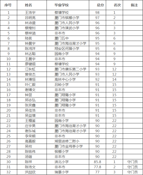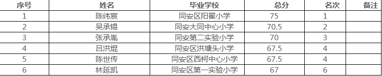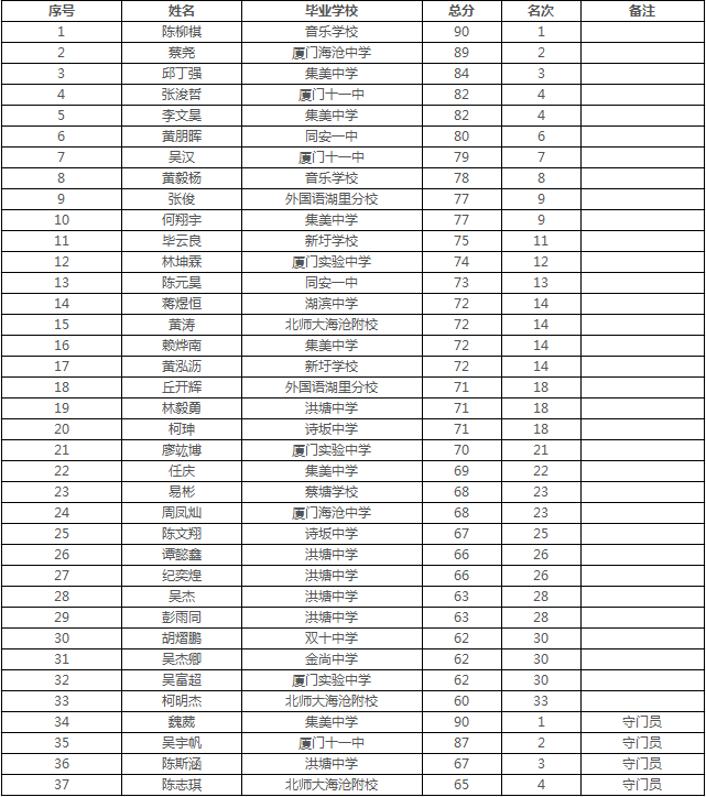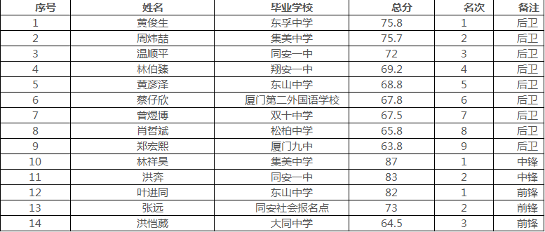 廈門科技中學(xué)(思明校區(qū))初中男子足球錄取名單