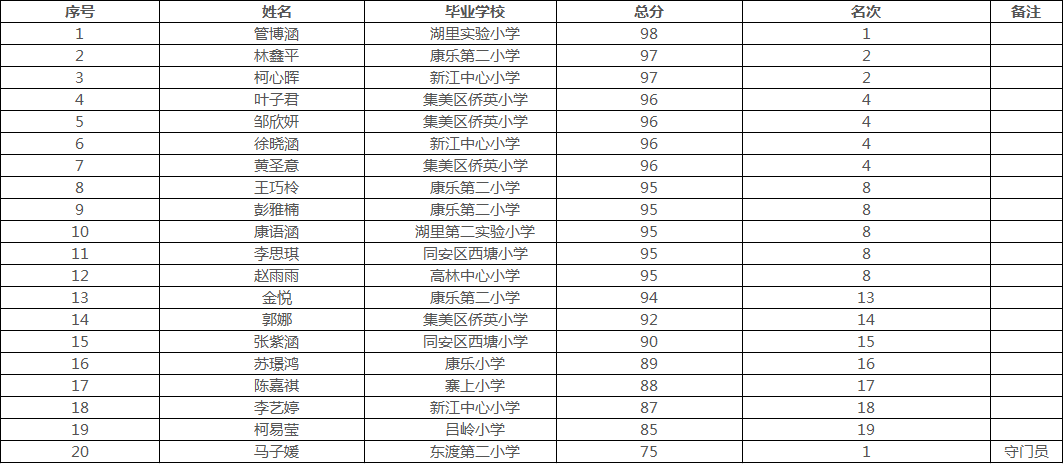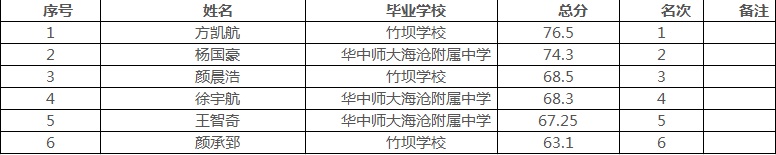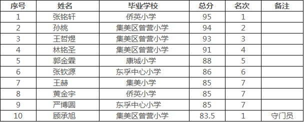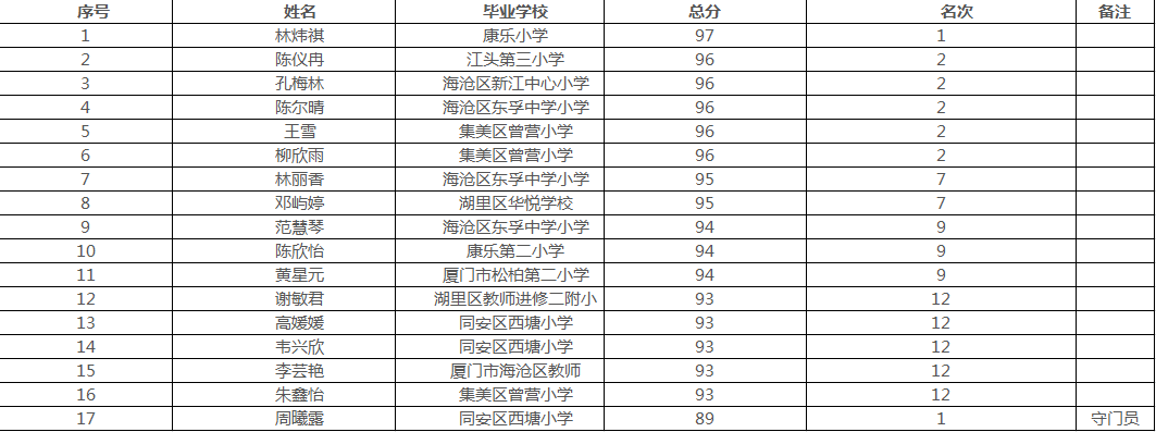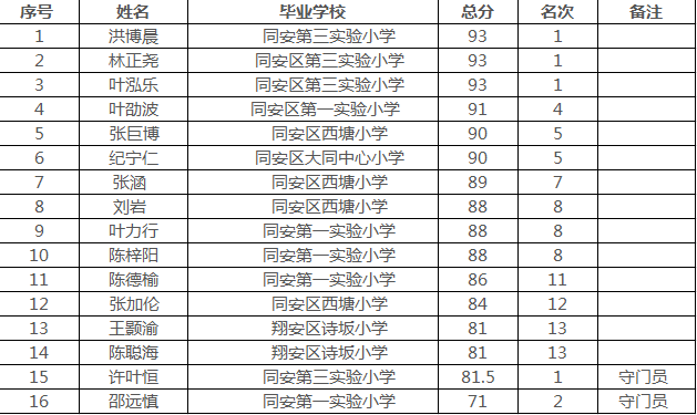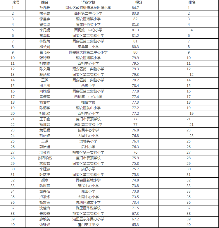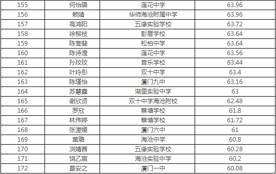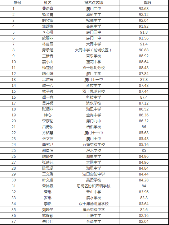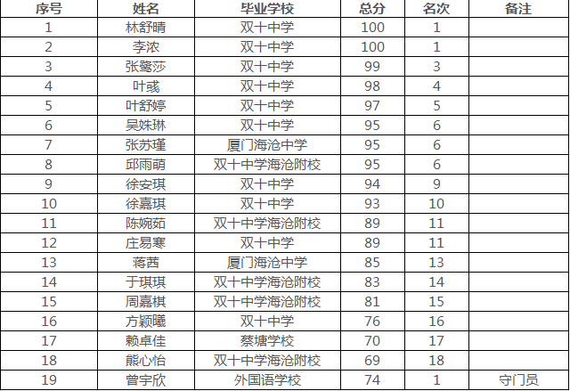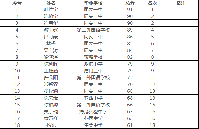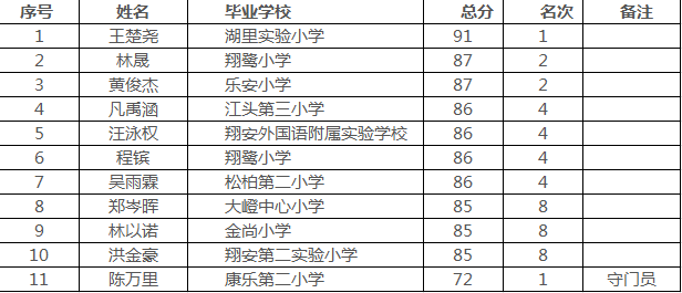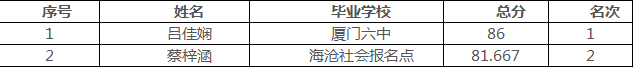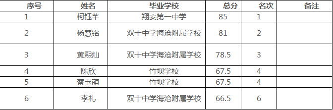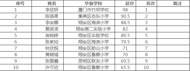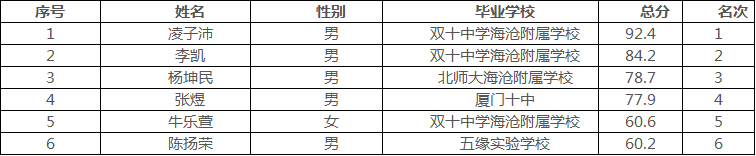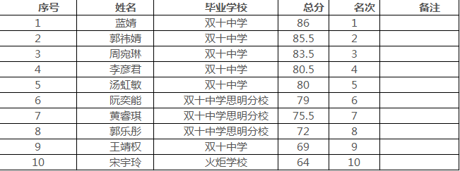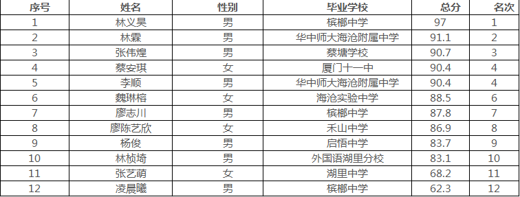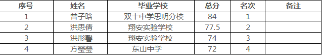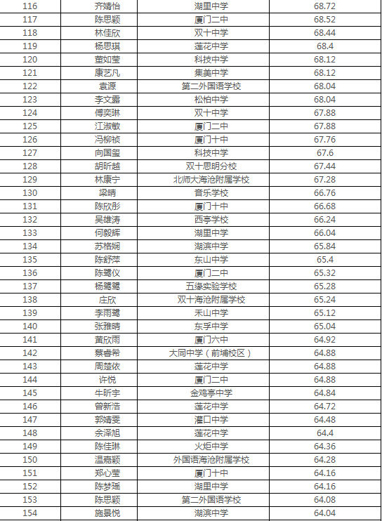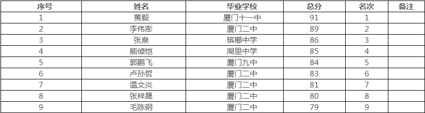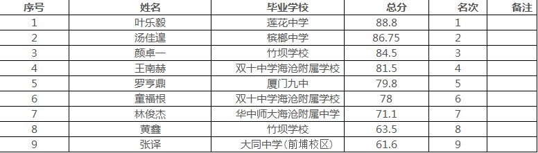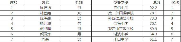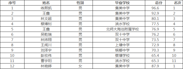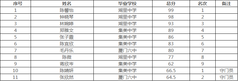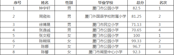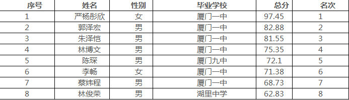 廈門一中(思明校區(qū))初中游泳錄取名單(男女各4人)