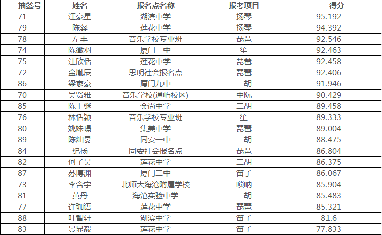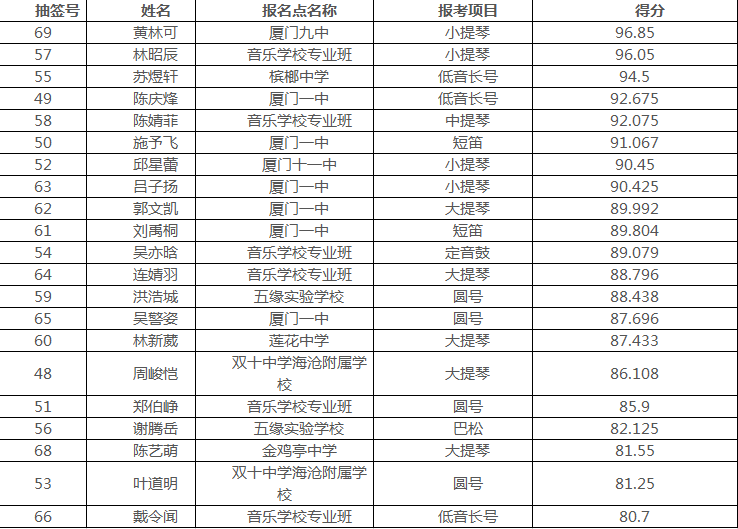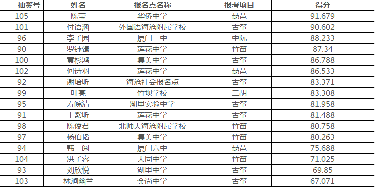 ?。ㄒ唬?a target="_blank">廈門一中高中西洋管弦樂入圍名單:
