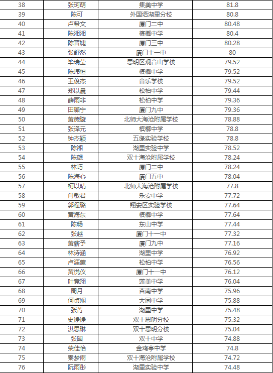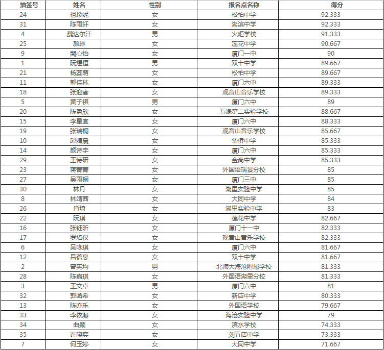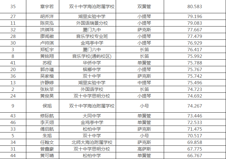 ?。ㄈ┛萍贾袑W(xué)翔安校區(qū)高中民樂入圍名單: