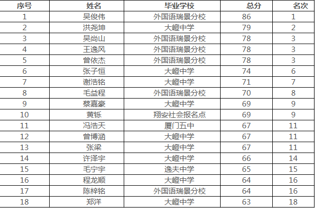 廈門科技中學(xué)(翔安校區(qū))高中田徑入圍名單