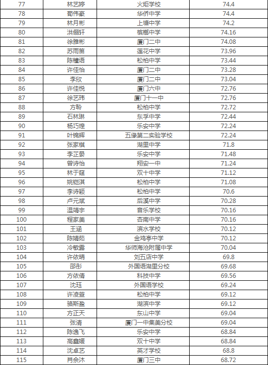 (四)科技中學(xué)翔安校區(qū)高中民樂團大提琴入圍名單: