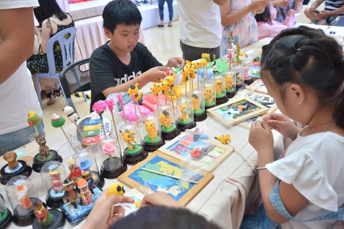 小朋友最喜歡的,莫過于五彩斑斕的捏面人世界,面粉為主料,調(diào)成不同色彩,用手和簡(jiǎn)單工具,塑造出各種栩栩如生的形象。腦洞可以足夠大,日本的皮卡丘形象與中國(guó)端午節(jié)必吃的粽子相結(jié)合,“皮卡粽”就誕生了,小朋友們個(gè)個(gè)玩得不亦樂乎。