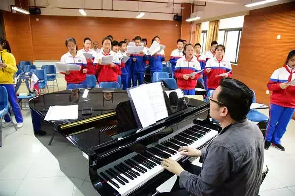作為音樂老師,高至凡也有“兩把刷子”,鋼琴、貝斯、電子琴、手鼓都能“玩得溜”,還擔(dān)任高中部合唱團的管弦樂指揮。