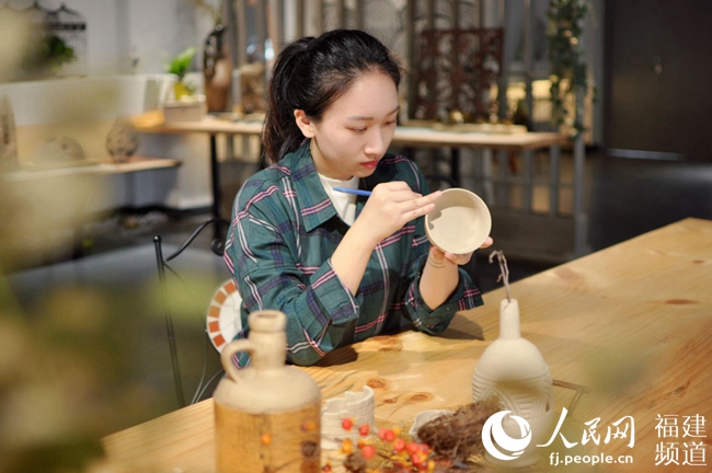 陳嫣跨專業(yè)考取陶瓷專業(yè),畢業(yè)后傳承弘揚(yáng)珠光青瓷文化。廈門市委宣傳部供圖