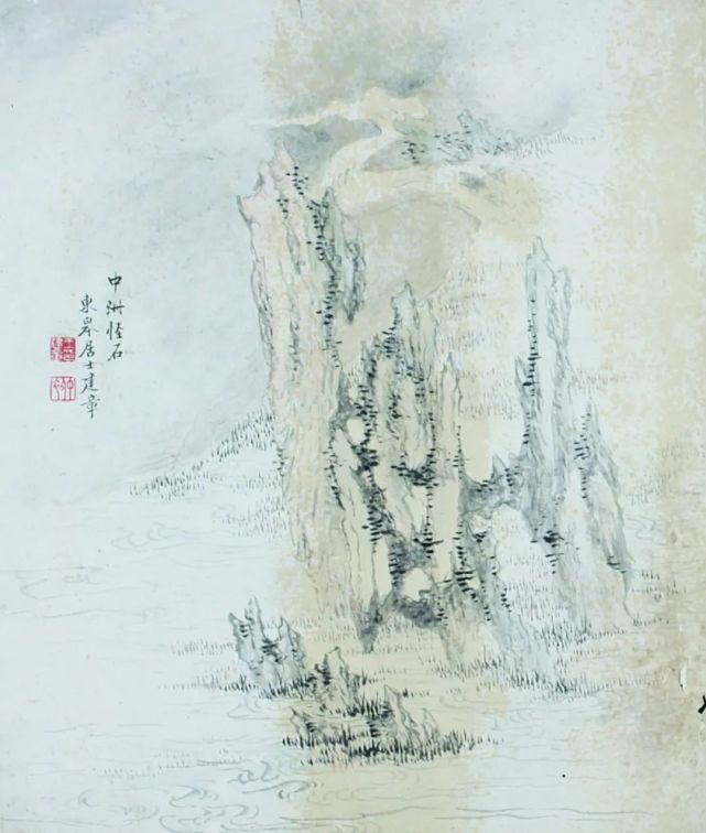 該圖冊分上下兩冊,原各12幅畫,畫作規(guī)格縱31.6厘米,橫28.2厘米,均有畫名?,F(xiàn)上冊僅剩兩幅,為《中洲怪石》《沙汀過雁》;下冊僅剩六幅,為《石壁留云》《凍云欲雪》《巖壑瀠洄》《峻瀨行舟》《峰回路轉(zhuǎn)》《□流激湍》。