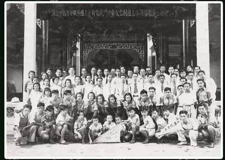 鄧穎超(后排右五)在廣州看望“廈兒團”時與部分團員的合影。