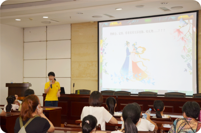 “古代的七夕不是情人節(jié)?”博物館志愿者夏軍老師率先開場(chǎng),對(duì)七夕節(jié)的來歷娓娓道來。七月初七原是古代婦女們相聚嬉戲的日子,婦女們?cè)谄咴缕邊⑴c游樂、祭祀、社交等社會(huì)活動(dòng),于是一個(gè)屬于女性的特殊時(shí)間點(diǎn),與寄托著女性“巧智”之思的織女意向相結(jié)合,七夕節(jié)的風(fēng)俗活動(dòng)由此衍生發(fā)展。