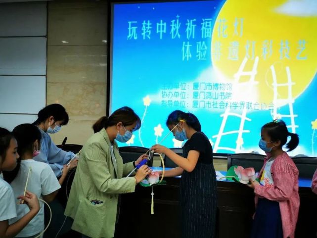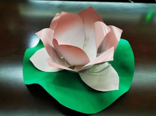 組裝好的小伙伴可以拿著荷花燈到講臺前,由老師安排統(tǒng)一為大家做固定,這樣,一盞美美的荷花燈就完成了~