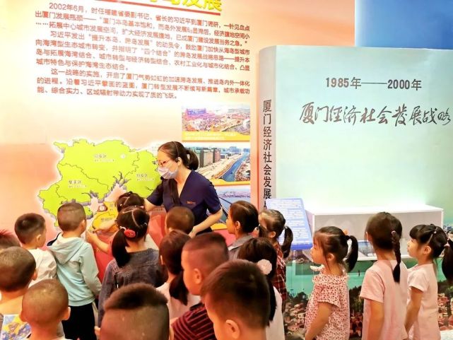 走過(guò)時(shí)光長(zhǎng)廊,通過(guò)新老照片對(duì)比,講解員小姐姐耐心的引導(dǎo)小朋友認(rèn)真尋找他們所看到的不同年代的廈門,有什么不一樣的變化,通過(guò)提問的互動(dòng)方式,加深萌娃們對(duì)特區(qū)的印象。