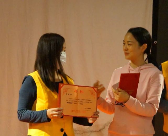 本次年會還有一項重要的議程就是廈博志愿者管委會的換屆工作。基于目前工作開展的需求,管委會全體委員提議,暫取消設(shè)置秘書長一職,增設(shè)一位副主任(增設(shè)后共2位),分別由志愿者陳韜和夏軍擔(dān)任,在場的廈博志愿服務(wù)隊成員一致舉手表決通過。最后,廈博對2019-2020年度優(yōu)秀志愿者進(jìn)行了表彰活動,廈博宣教部尤麗雪副主任為獲獎的年度優(yōu)秀志愿者頒發(fā)證書,并為在場的榮譽(yù)館員頒發(fā)專屬的星級徽章。