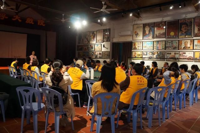 12月13日清晨,這座占地面積約5100平方米,名為“百姓院子”的院落內(nèi)格外熱鬧,一群身著黃馬甲、其上印有“我志愿,我快樂”字樣的人群正圍著講解員蘇?;屠蠋煙崃业貑杺€不停。他們已經(jīng)跟隨蘇老師整體參觀了百姓院子,了解到這座以電影文創(chuàng)兼閩南傳統(tǒng)耕讀文化為主題的博物館概貌。