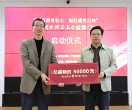 為了助力寧德教育系統(tǒng)抗疫,幫助寧德市更多學生成長成才,啟動儀式上,新東方福建網(wǎng)課中心向?qū)幍率薪逃志栀泝r值5萬元的防疫物資,以及200個“公益培優(yōu)課程”名額。