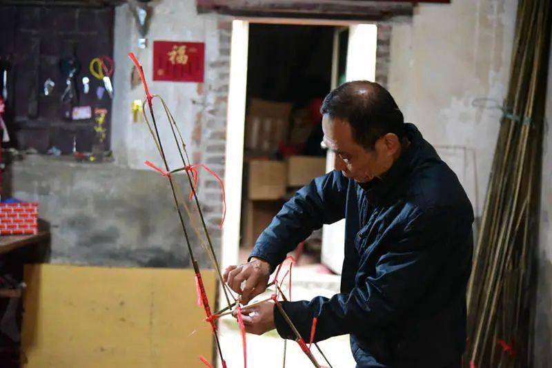 十點(diǎn)半,陳賜勇將手中的篾條捆扎成了一個(gè)立體的框架。