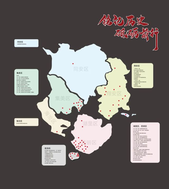 策展方耗費(fèi)巨大精力收集、整理廈門紅色遺址資料,以地圖的形式讓觀眾直觀地、迅速地了解廈門革命遺址全貌。觀眾也可按圖索驥,找到廈門各個(gè)區(qū)、各階段留下的革命印記。