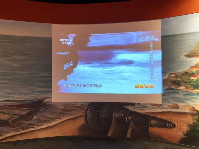 巨大的弧形場(chǎng)景中投影播放“八二三炮戰(zhàn)”相關(guān)紀(jì)錄片,讓立于屏幕前方的觀眾隨著投影畫面置身于喧囂炮火的歷史中。