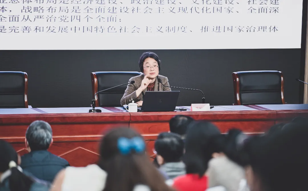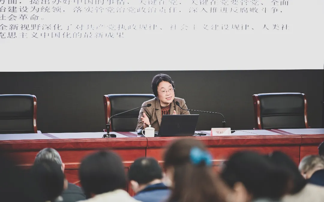 蘇秋華副校長通過“四個時期”、“兩個始終”與“三次飛躍”展開敘述,告訴我們要把握歷史發(fā)展大勢,堅定理想信念,牢記初心使命,從偉大勝利中激發(fā)奮進力量。