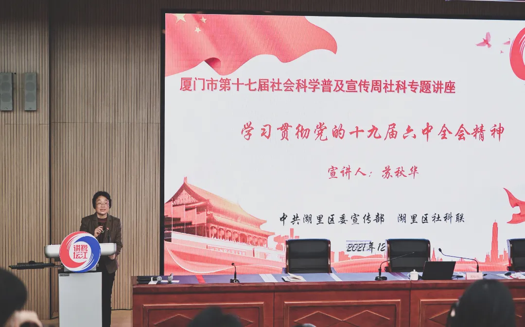 會上,王瑋副局長介紹本次的主講人,本次宣講會由廈門市委黨校常務(wù)副校長蘇秋華主講。根據(jù)中央宣講團的宣講要求與中央有關(guān)部署,蘇秋華副校長圍繞著對“黨的十九屆六中全會精神”的五個深刻認識與深刻領(lǐng)會展開此次宣講,五個“深刻認識”,給與會者鼓足了勁頭。