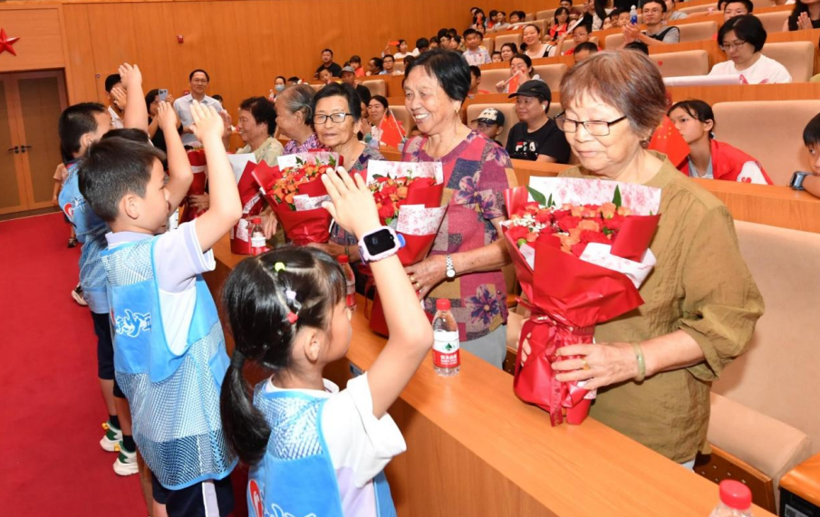 海峽導(dǎo)報(bào)融媒體小記者團(tuán)——“海峽少年”的代表們?yōu)?ldquo;英雄奶奶”獻(xiàn)上鮮花時(shí),全場(chǎng)響起熱烈的掌聲。那一刻,歷史與現(xiàn)實(shí)交匯,敬意與感動(dòng)交融。