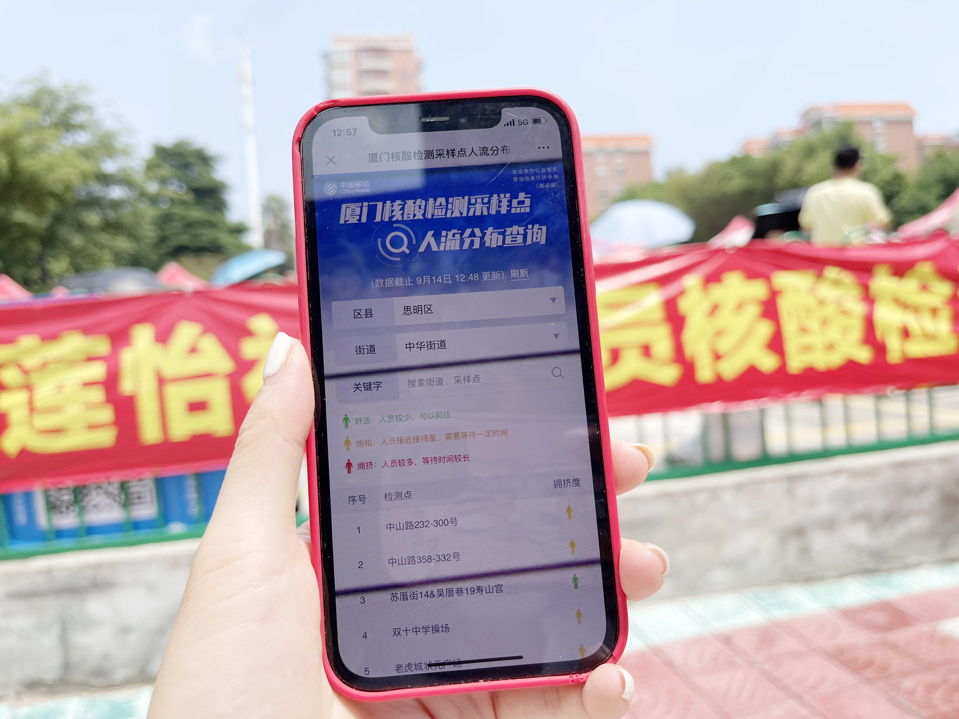 針對(duì)前期核酸檢測(cè)過(guò)程中部分點(diǎn)位“排隊(duì)時(shí)間久、人群集中密度大”等問(wèn)題,廈門移動(dòng)積極踐行為民辦實(shí)事初心,主動(dòng)對(duì)接市委及各區(qū)政府,于9月14日上午7點(diǎn)正式上線智慧防疫“黑科技”——核酸檢測(cè)點(diǎn)人流量分布查詢平臺(tái),助力核酸檢測(cè)服務(wù)。
