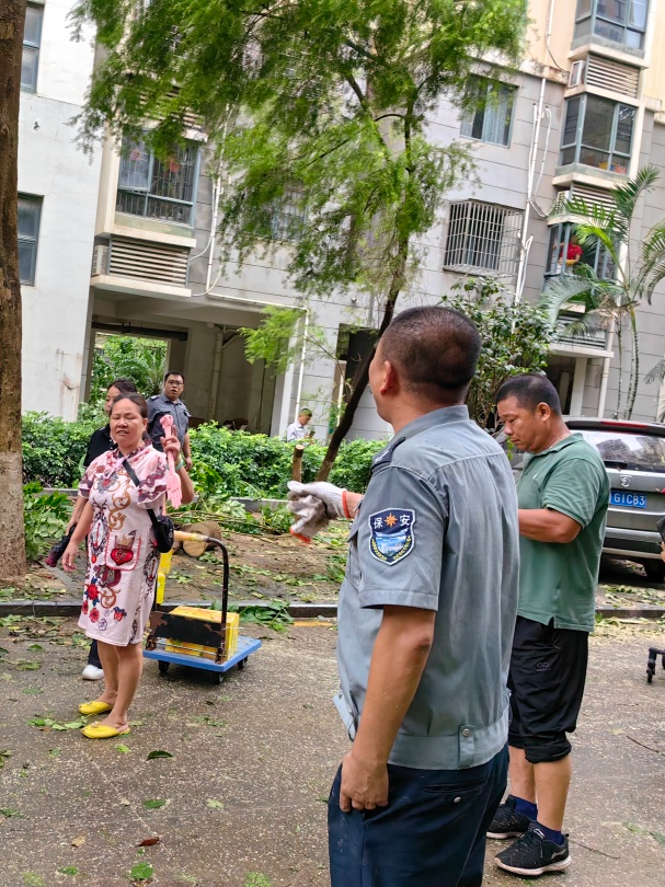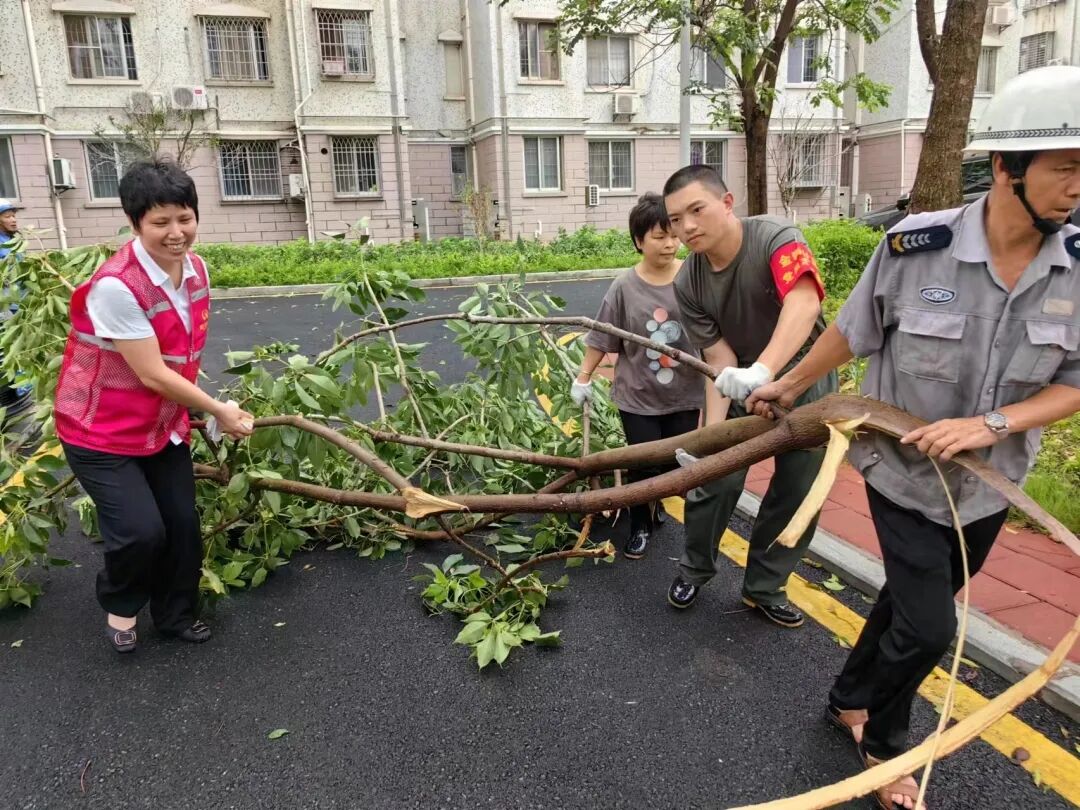 共同清理小區(qū)內(nèi)的傾倒樹(shù)枝