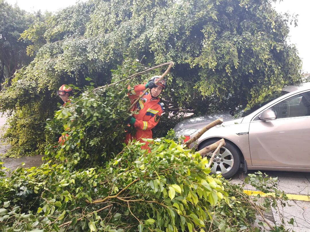及時(shí)清理轄區(qū)倒伏樹(shù)木、廣告牌、電動(dòng)車等