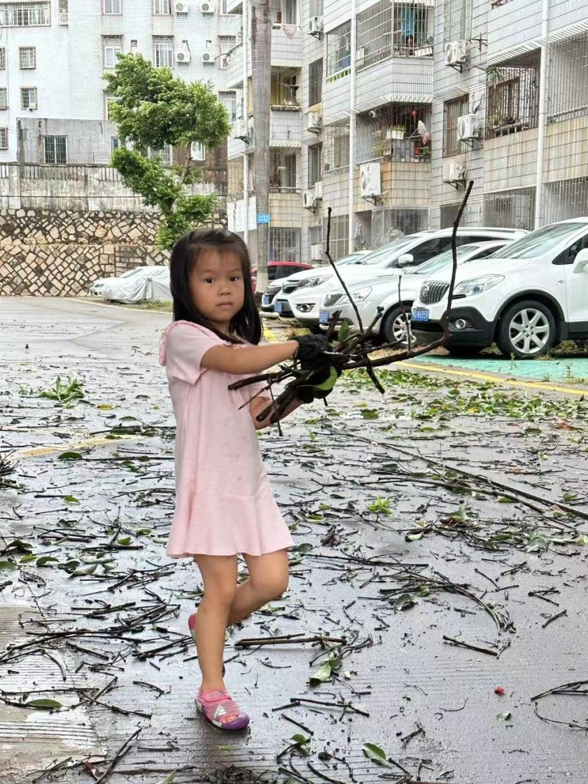 枋湖南社區(qū)居民月建國(guó)不僅送來(lái)礦泉水和功能性飲料,還帶著孩子參與清障志愿服務(wù),“這些樹(shù)枝倒在路上,大家出行也不便,我有力氣,搬這些樹(shù)枝不算什么!”“我爸爸平時(shí)最愛(ài)幫助別人了,我也喜歡和爸爸一起。”小月說(shuō)。